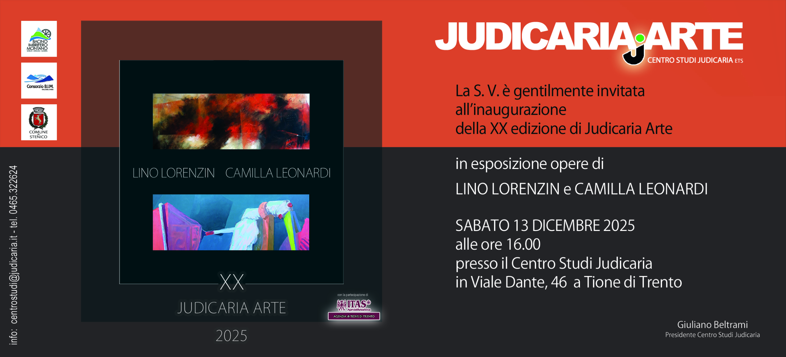 Inaugurazione XX Edizione Judicariarte dedicata a Lino Lorenzin e Camilla Leonardi, sabato 13 dicembre 2025, ore 16:00, Centro Studi Judicaria
