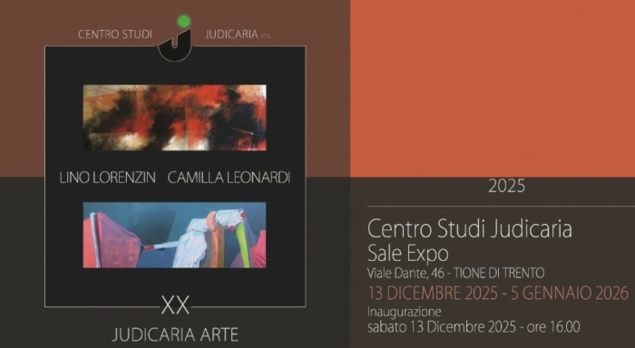 Sabato 13 dicembre 2025 alle ore 16:00 si terrà presso le sale expo del Centro Studi Judicaria di Tione l’inaugurazione della mostra di JudicariArte dedicata agli artisti Camilla Leonardi e Lino Lorenzin. Presenterà la mostra il Presidente del Centro Studi Giuliano Beltrami, con osservazioni estetiche a cura di Gabriella Maines e Alessandro Togni.